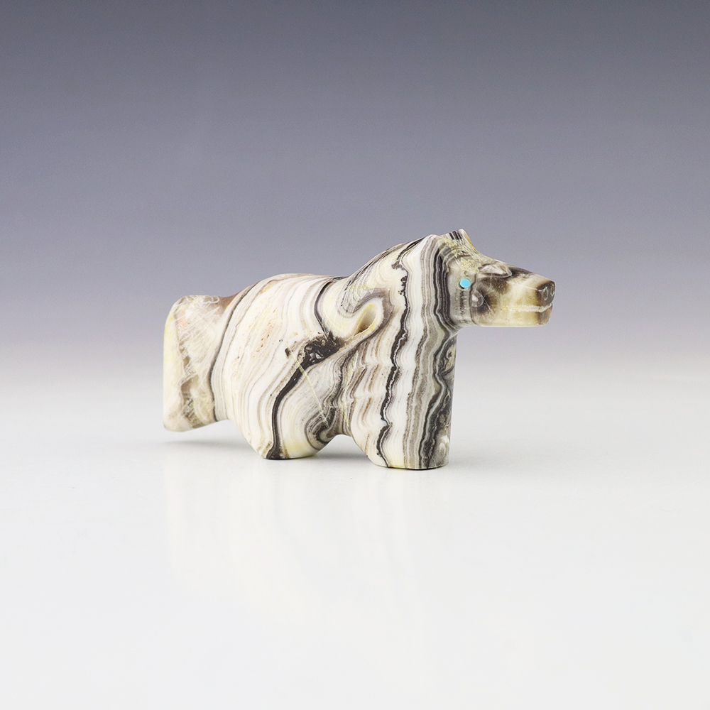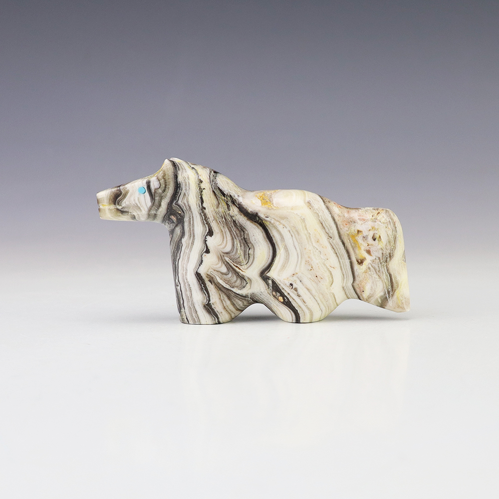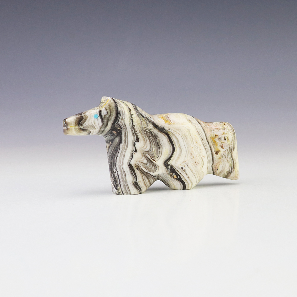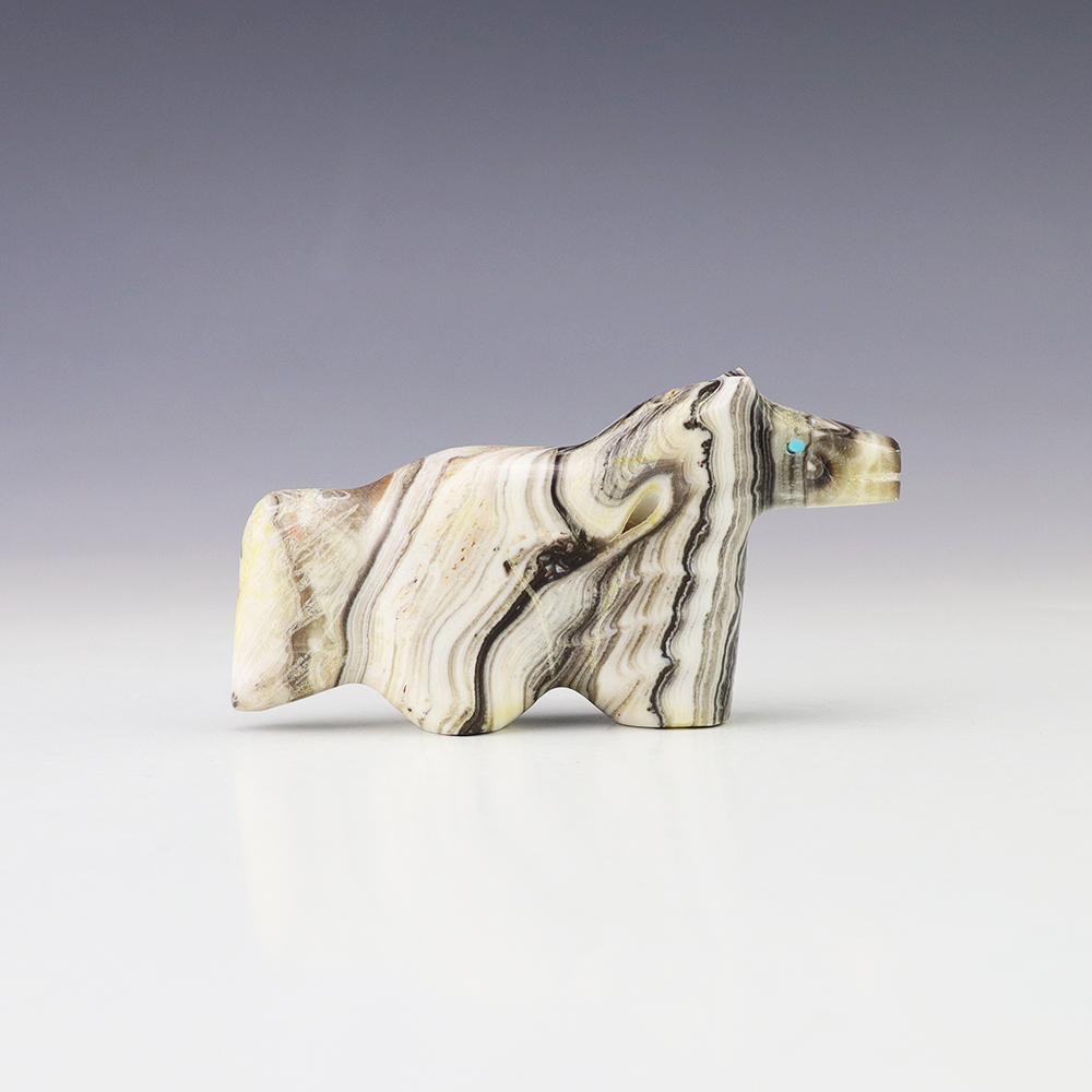 Zuni fetishes are carvings made from various materials by the Zuni people. Traditionally, fetishes served a ceremonial purpose for their creators and they represented animals and figures that were part of their culture. Today, as a form of Native American Art, they are sold to collectors worldwide. With a myriad of materials like turquoise, shell, jet, marble, serpentine, and much more, Zuni fetish carvers are able to create carvings in a style of their own.