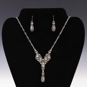 NATIVE AMERICAN ZUNI WILD HORSE NECKLACE & EARRINGS BY FAYE LOWSAYATEE