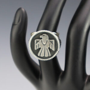 NATIVE AMERICAN NAVAJO STERLING SILVER THUNDERBIRD RING BY BO REEVES 4 3/4