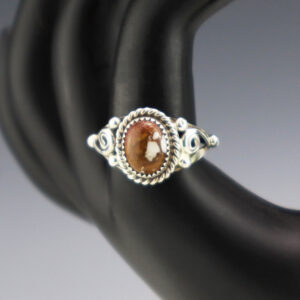This ring is a great representation of hand made Navajo jewelry and will make a statement on your hand. Spiny Oyster is set into a sterling silver setting. Made by Navajo artist Theresa Kinsel. Weighs 2 grams. Size 8 3/4. 3/8″ long Artist card included The Navajos...