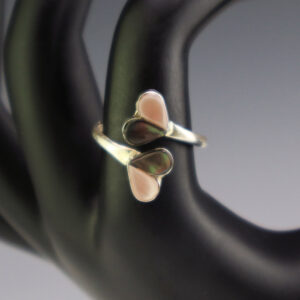 NATIVE AMERICAN ZUNI MOTHER OF PEARL SHELL & PINK MUSSEL HEART RING adj