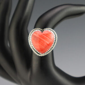 NATIVE AMERICAN NAVAJO STERLING SILVER & SPINY OYSTER HEART RING 7