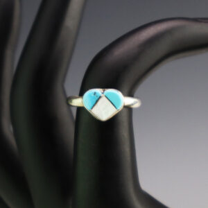 ZUNI MOTHER OF PEARL & TURQUOISE HEART RING BY LINDA CHAVEZ 5 3/4
