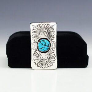 NATIVE AMERICAN NAVAJO STERLING SILVER & TURQUOISE MONEY CLIP BY SHIRLEY SKEETS