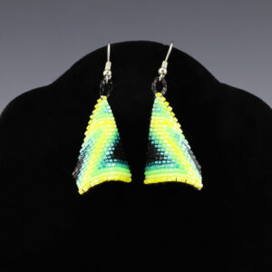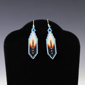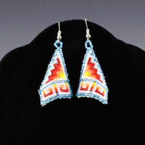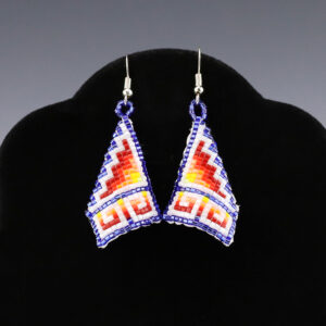 Gorgeous beaded earrings by Matilda Poyer. Great combination of colors. With ear wires are 2 1/8” in length. 1″ x 1 1/2″ Artist card included When trade beads were introduced to Native Americans, they made these colorful glass beads part of their jewelry. Over the years,...