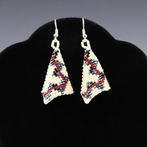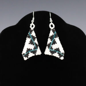 Navajo artist Geri Hatathli hand beaded these stellar earrings. Great pattern! With ear wires are 3” in length. 7/8″ x 2 1/2″ When trade beads were introduced to Native Americans, they made these colorful glass beads part of their jewelry. Over the years, glass beads have been used to complement...