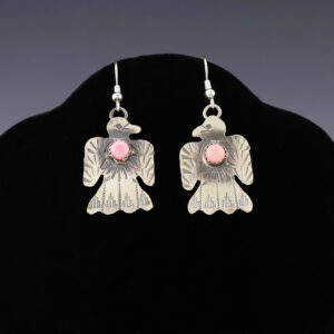 Stellar Thunderbird earrings hand made out of sterling silver and Pink Conch by Navajo artist Gabrielle Yazzie. A timeless beauty that you will enjoy for years to come. Weighs 4 grams. Signed 3/4” wide x 1 1/8” long 1 3/4″ long (including ear wires) Artist card included...