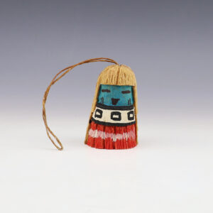 Hopi/Acoma artist Adrian Leon creates wonderful miniature kachinas, and this Clown Kachina is no exception. Delicately carved and painted, this marvelous carving would be a great addition to your kachina or Native American art collection. Signed 2 3/4″ tall x 1 1/4″ long x 1 1/8” wide Artist...