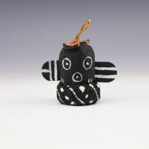Hopi/Acoma artist Adrian Leon creates wonderful miniature kachinas, and this Pot Carrier Kachina is no exception. Delicately carved and painted, this marvelous carving would be a great addition to your kachina or Native American art collection. Signed 2 1/4″ tall x 1 5/16″ long x 1 1/8” wide ...