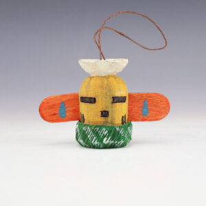 Marvin Jim hand carved this marvelous kachina ornament out of wood. Navajo folk art consists of figurines usually carved out of wood that depict Navajo life and culture. 2 1/2” long x 1 5/8” wide x 2 1/8″ tall Artist card included In recent years, wood...