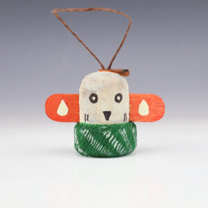 Marvin Jim hand carved this marvelous raccoon ornament out of wood. Navajo folk art consists of figurines usually carved out of wood that depict Navajo life and culture. 2 5/8″x 1 3/16” x 1 1/4” Artist card included In recent years, wood figurines hand carved by self-taught Navajo artists have...