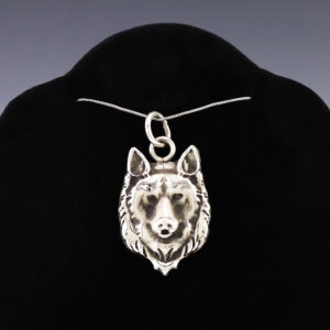 NATIVE AMERICAN ZUNI STERLING SILVER WOLF PENDANT BY VIRICK LAWEKA