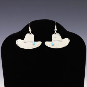 NAVAJO STERLING SILVER COWBOY HATS & TURQUOISE EARRINGS BY LUCILLE PLATERO