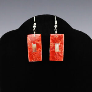 Kewa artist Jeanette Calabaza handcrafted these lovely earrings out of Spiny Oyster and Olive Shell. These earrings will look fabulous with any outfit. Weighs 6 grams. 1 3/16” wide x 1 7/8” long 2 5/8″ long (including ear wire) Artist card included Kewa (Santo Domingo) artists are...