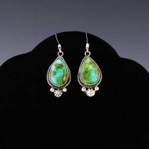 Gorgeous earrings hand made out of sterling silver and Sonoran Gold Turquoise. These fabulous earrings will become a versatile accessory in your jewelry collection. Weighs 10 grams. 3/4″ x 7/8″ The Navajos began working with silver in the 19th century, and began making...