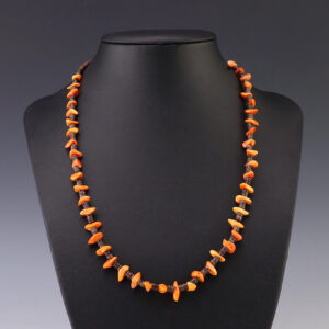 Kewa artist Lupe Lovato hand crafted this stunning necklace out of Spiny Oyster. Traditionally made by hand cutting, drilling, rolling, and stringing. Weighs 78 grams. A timeless beauty that you will enjoy for years to come. (note-there is natural pitting in the shell) 1/8″ to 1″ wide ...