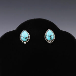 Beautiful earrings made out of sterling silver and set with Turquoise stones. These fabulous earrings will become a versatile accessory in your jewelry collection. Weighs 4 grams. 3/8″ x 9/16″ The Navajos began working with silver in the 19th century, and began making things like buckles, bridles,...