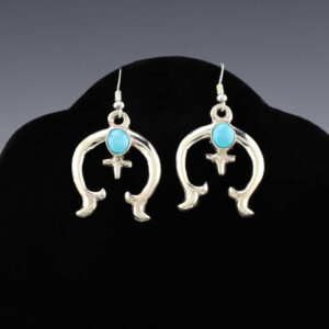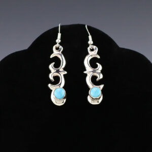 Lovely earrings hand made out of sterling silver and Turquoise by Navajo silversmith Selena Warner. These fabulous earrings will become a versatile accessory in your jewelry collection. Weighs 8 grams. Signed. 1/2″ x 1 3/4″ Artist card included The Navajos began working with silver in the 19th century, and began...