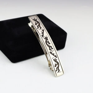 Fabulous barrette made out of sterling silver. Great Kokopelli design. Navajo barrettes and ponytail holders look absolutely amazing in your hair. Weighs 10 grams. 1/2″ x 3 1/8″ Around 1865, a Navajo Blacksmith Atsidi Sani who admired the silver adornments that the Spaniards and their horses...
