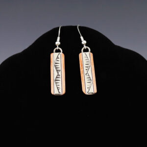 Beautiful earrings made out of sterling silver and Spiny Oyster made by Navajo artist Marita Benally. These fabulous earrings will become a versatile accessory in your jewelry collection. Weighs 12 grams. Signed 9/16″ x 1 11/16″ With ear wires are 2 1/8” in length Artist card included ...