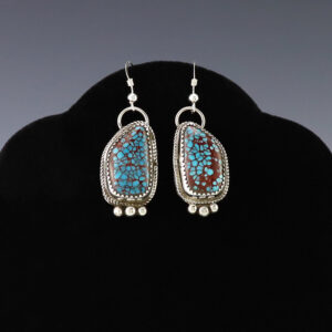 Lovely bead earrings hand made out of sterling silver and Coral by Navajo silversmith Samantha Martin. These wonderful earrings will become a versatile accessory in your jewelry collection. Weighs 6 grams. Signed 7/16″ x 1 1/4″ With ear wires are 1 13/16” in length Artist card included ...