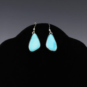 Lovely earrings hand made out of sterling silver and New Lander Variscite by Navajo artist Renell Perry. These fabulous earrings will become a versatile accessory in your jewelry collection. Weighs 6 grams. Signed 5/8″ x 1 5/16″ Artist card included The Navajos began working with silver in...