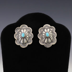 NAVAJO STERLING SILVER & TURQUOISE CONCHO EARRINGS BY DALE MORGAN