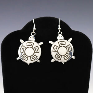Stellar Turtle earrings hand made out of sterling silver and Turquoise by Navajo silversmith Mildred Parkhurst. These wonderful earrings will become a versatile accessory in your jewelry collection. Weighs 8 grams. Signed 1 1/8″ x 13/16″ With ear wires are 1 11/16” in length Artist card included The Navajos began...