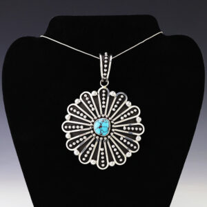 NATIVE AMERICAN NAVAJO STERLING SILVER & TURQUOISE PENDANT BY JOHNATHAN NEZ