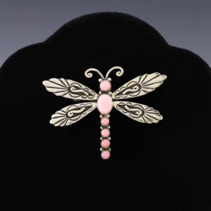 Lovely sterling silver and Pink Conch Dragonfly pin/pendant by Navajo artist Lee Charley. A timeless beauty that you will enjoy for years to come. Weighs 10 grams. Signed 2 1/16” wide x 1 1/2” long Artist card included The Navajos began working with silver in the...