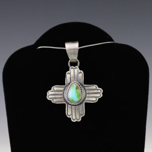 NAVAJO STERLING SILVER & TURQUOISE CROSS PENDANT BY ISABELLE KEE
