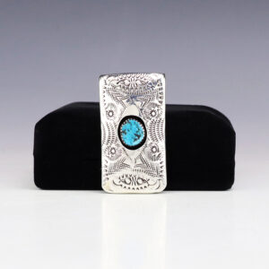 NATIVE AMERICAN NAVAJO STERLING SILVER & TURQUOISE MONEY CLIP BY SHIRLEY SKEETS