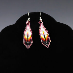 Gorgeous beaded earrings by Matilda Poyer. Great combination of colors. With ear wires are 2 7/8” in length 3/4″ x 2 1/4″ Artist card included When trade beads were introduced to Native Americans, they made these colorful glass beads part of their jewelry. Over the years, glass...