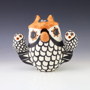 Brilliantly constructed by hand from natural clay, the owl is covered in intricate polychrome designs. Hand made by Acoma artist Mary Antonio. A unique addition to any pottery or Native American art collection. Signed 3 3/4” tall x 2 5/8″ long x 2 5/8″ wide Artist card included...