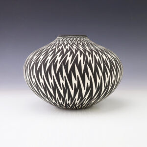 This eye dazzler was hand made by Acoma potter Paula Estevan. Paula was born in Acoma Pueblo in 1967. She learned the art of making pottery in the traditional way from her mother, Patricia Estevan, and from Mary Chino and Victoria Garcia. She’s been producing pottery since 1986. Paula’s hand...
