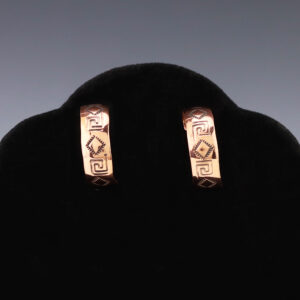 Lovely hoop earrings out of copper. These earrings will become a versatile accessory in your jewelry collection. Weighs 10 grams. 3/16″ x 1 5/16″ The Navajos began working with silver in the 19th century, and began making things like buckles, bridles, buttons, rings, canteens, hollow beads, earrings,...