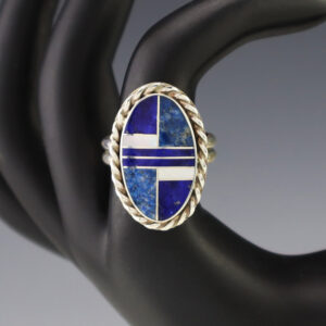 This ring is a great representation of hand made Navajo jewelry and will make a statement on your hand. Lapis is set into a sterling silver setting. Made by Navajo artist Priscilla Smith. Weighs 4 grams. Size 7. Signed 1″ long Artist card included ...