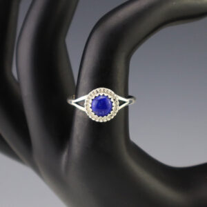 This ring is a great representation of hand made Navajo jewelry and will make a statement on your hand. Lapis is set into a sterling silver setting. Made by Navajo artist Theresa Kinsel. Weighs 2 grams. Size 7 1/2. 3/8″ long Artist card included The Navajos began...