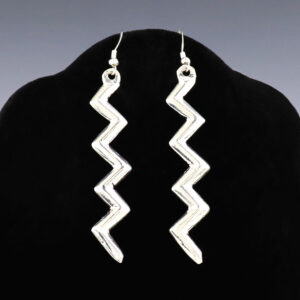 Lovely earrings hand made out of sterling silver. Hand made by Navajo silversmith Caroline Tsosie. These fabulous earrings will become a versatile accessory in your jewelry collection. Weighs 2 grams. 15/16″ x 1 1/16″ 1 11/16″ long (including ear wires) Artist card included The...