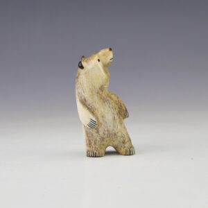 The Bear symbolizes healing and strength. Zuni artist Evalena Boone hand crafted this magnificent bear fetish. The carving is made out of Dolomite. 1 3/8” tall x 2 1/8” long x 3/4” wide Artist card included Zuni fetishes are carvings made from various materials by the Zuni people. Traditionally, fetishes...