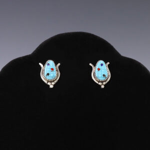 Zuni artist, Diane Lonjose created these lovely earrings. Made out of sterling silver and set with natural Castle Dome Turquoise. The components are all hand fabricated and the stones are all natural. Diane comes from a family of Zuni jewelers. She is the daughter of Alice and Duane Quam, and...