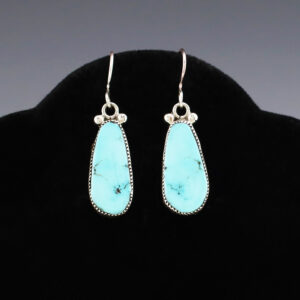 Zuni artist Diane Lonjose made these beautiful earrings. Made out of sterling silver and set with natural Kingman Turquoise stones. The components are all hand fabricated and the stones are all natural. Diane comes from a family of Zuni jewelers. She is the daughter of Alice and Duane Quam,...