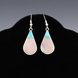 Zuni artists are known for their fine lapidary skills. These earrings are no exception. Zuni artists Eldrick and Charlotte Seoutewa made these lovely earrings out of sterling silver and Mother of Pearl Shell. Weighs 2 grams. 1/2” wide x 7/8” tall With ear wires are 1 3/8” in length...