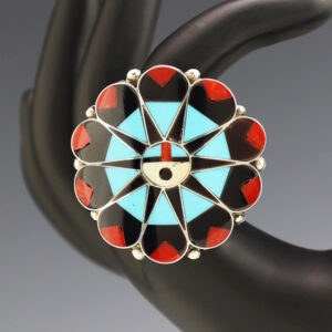 INLAY SUN FACE RING BY DELWIN GASPER ZUNI 8 1/4