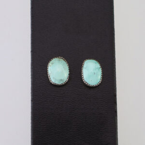 Zuni artist, Diane Lonjose created these lovely earrings. Made out of sterling silver and set with natural Emerald Valley Turquoise. The components are all hand fabricated and the stones are all natural. Diane comes from a family of Zuni jewelers. She is the daughter of Alice and Duane Quam, and...