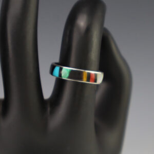 ZUNI STERLING SILVER & INLAY RING BY ROSEWITHA UKESTINE
