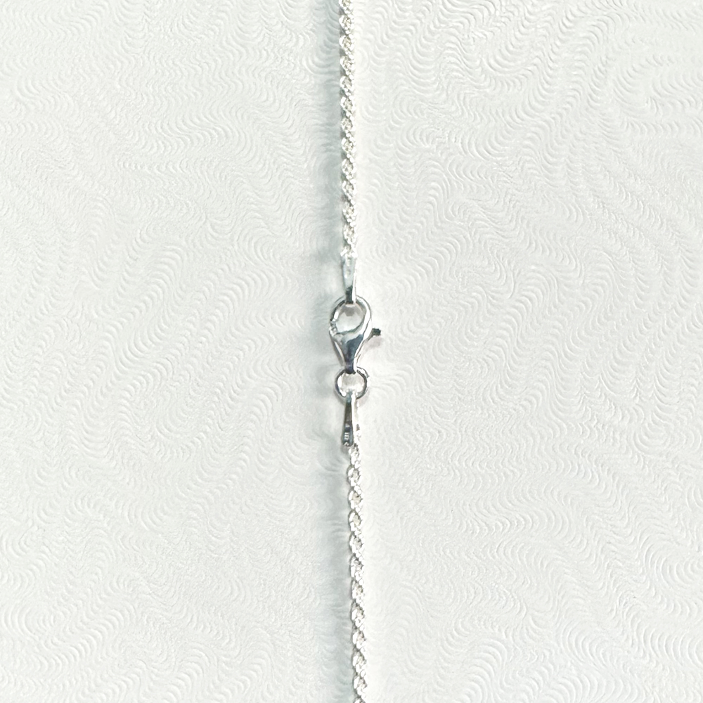1.4 mm Sterling Silver Rope Chain in 16″ length with a tear drop lobster clasp
