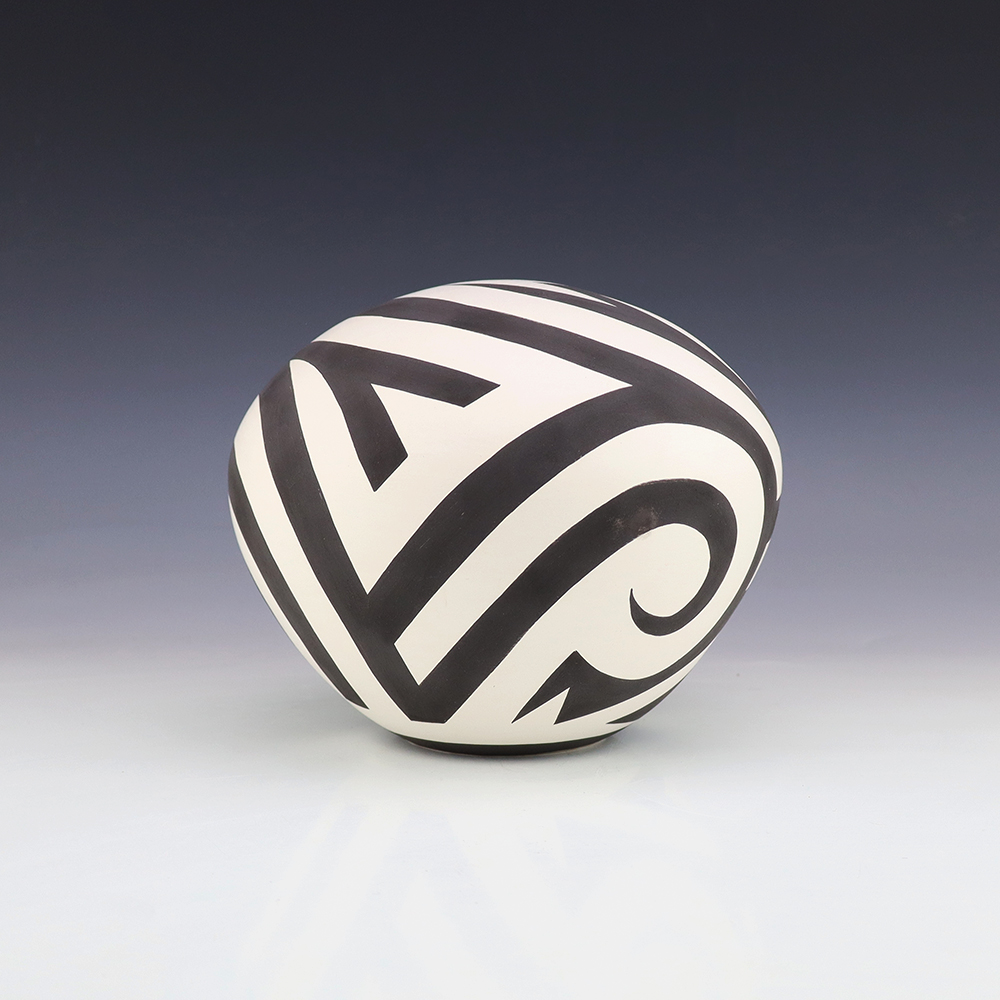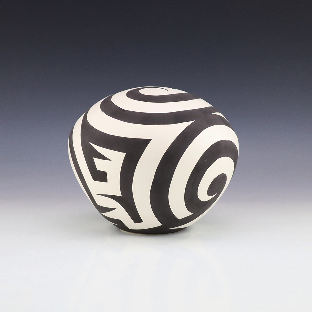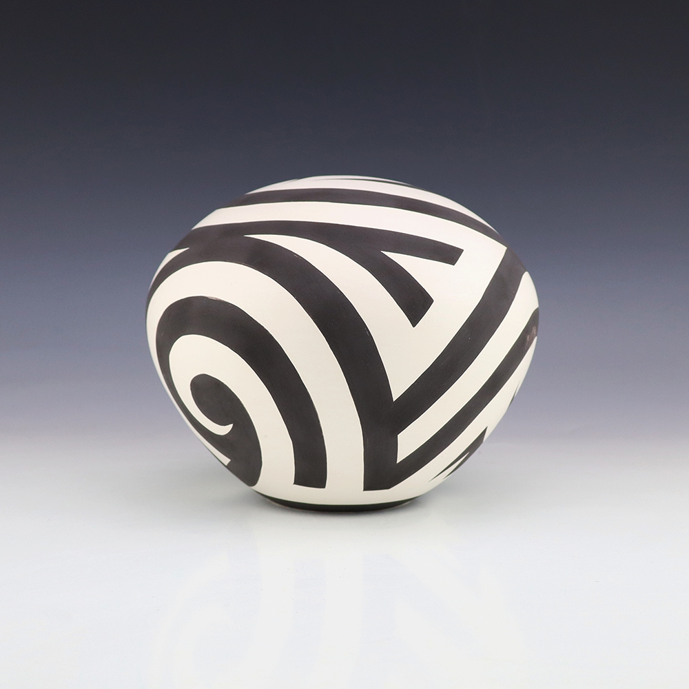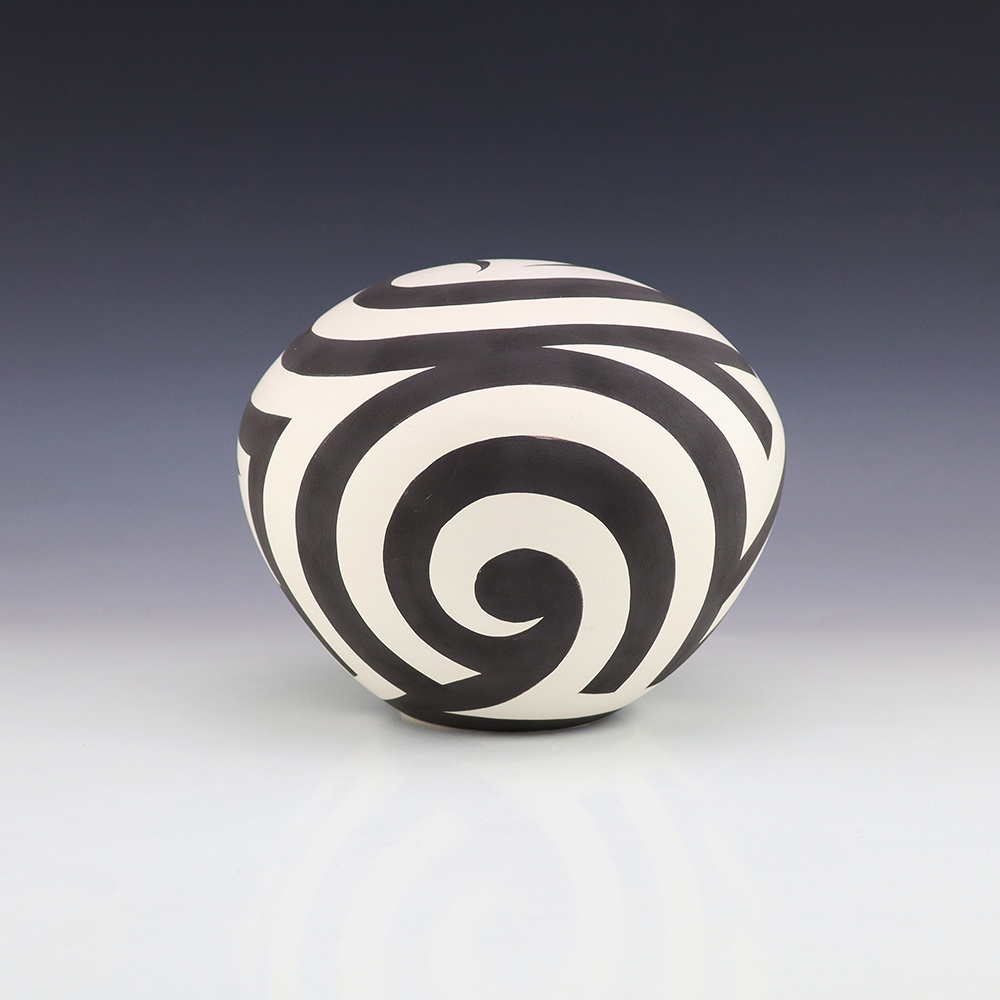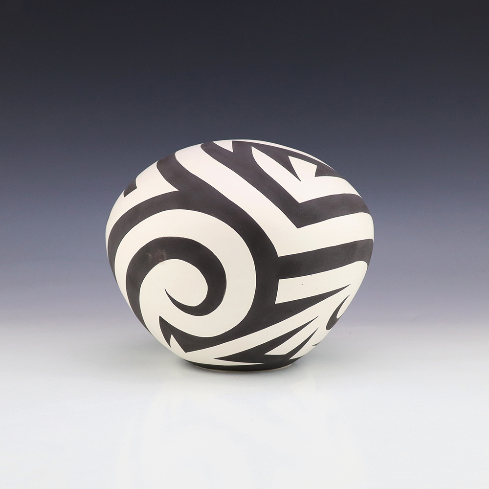 This exquisite vase was handmade by Emma Yepa from Jemez Pueblo. Emma was born in 1968, and she has been an active artist since 1987. She specializes in swirl melon designs. She gathers her natural materials from Jemez, and fires the pottery traditionally outdoors and in a kiln. Emma learned...