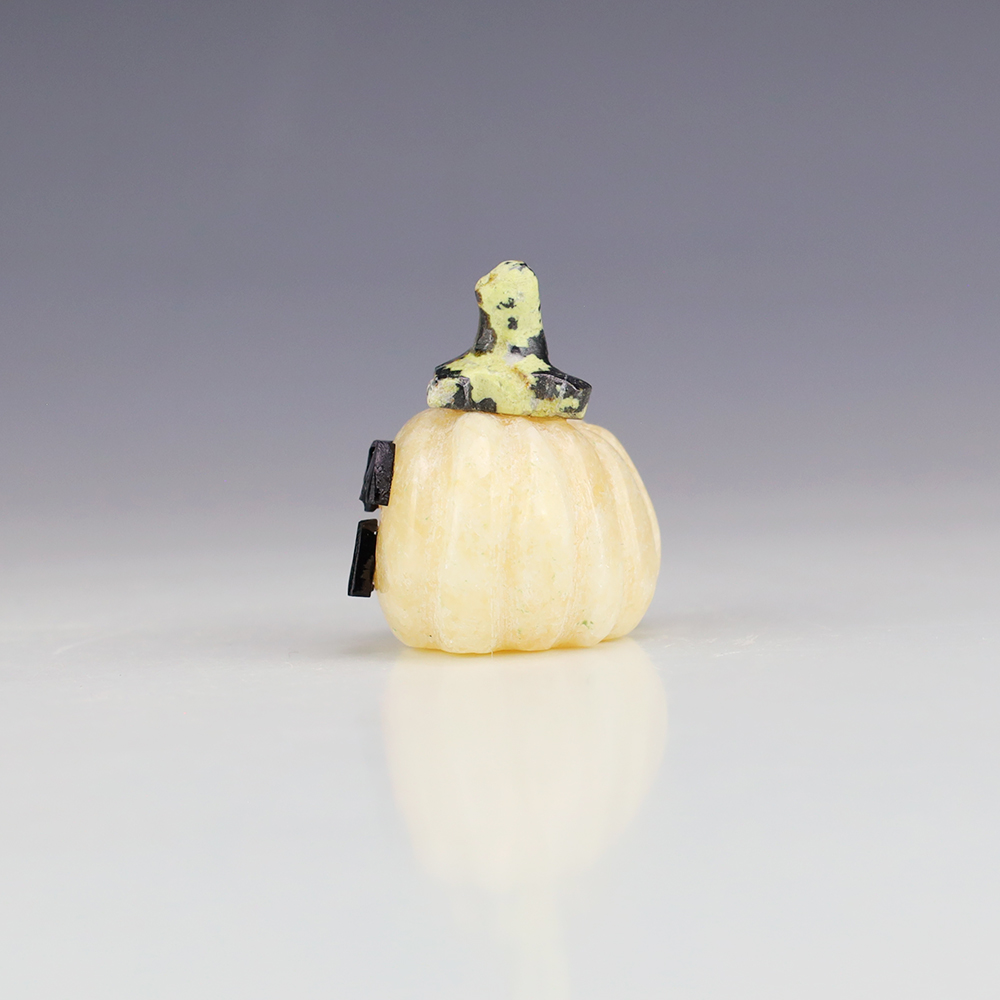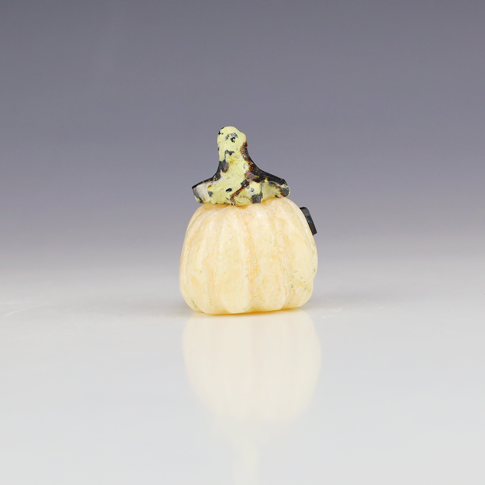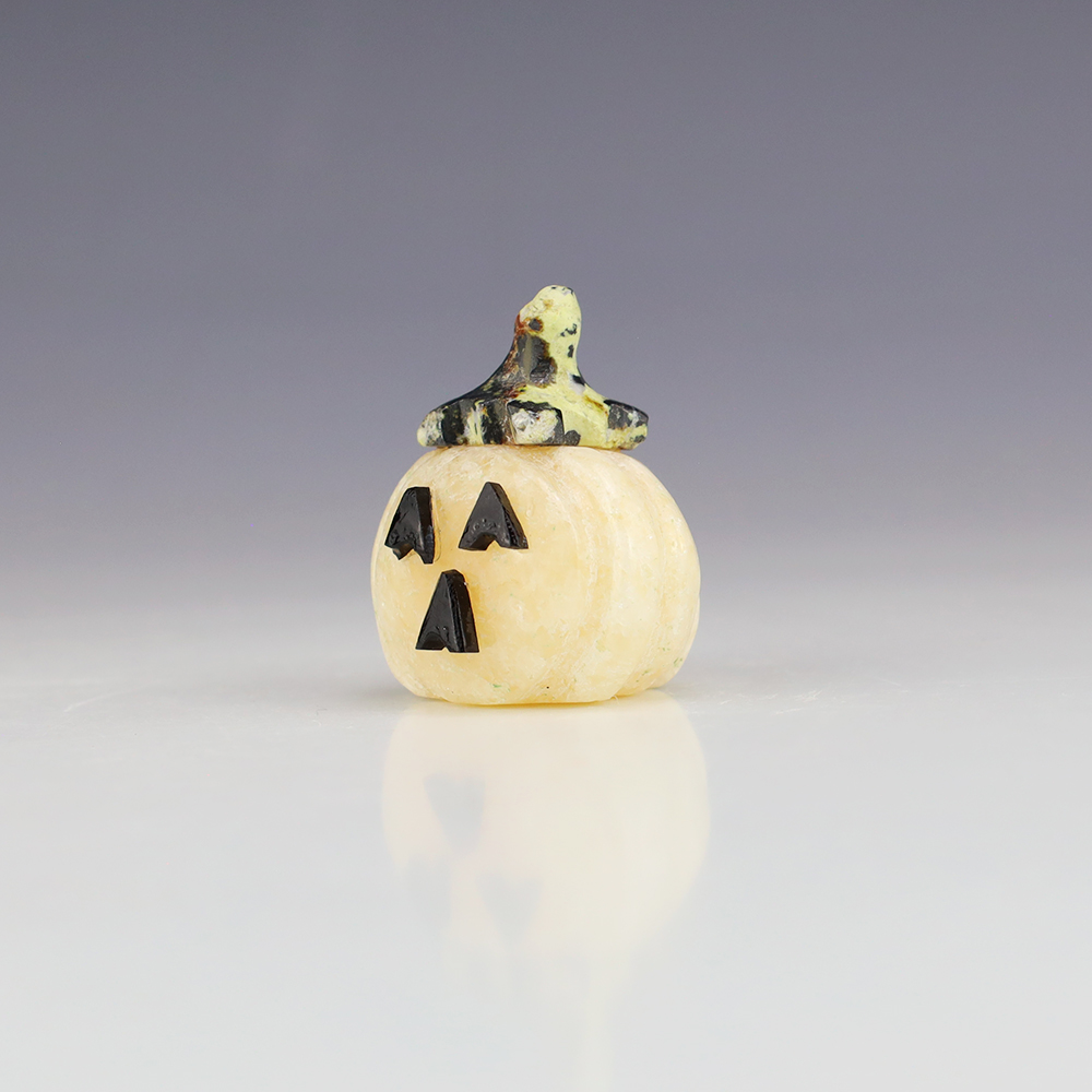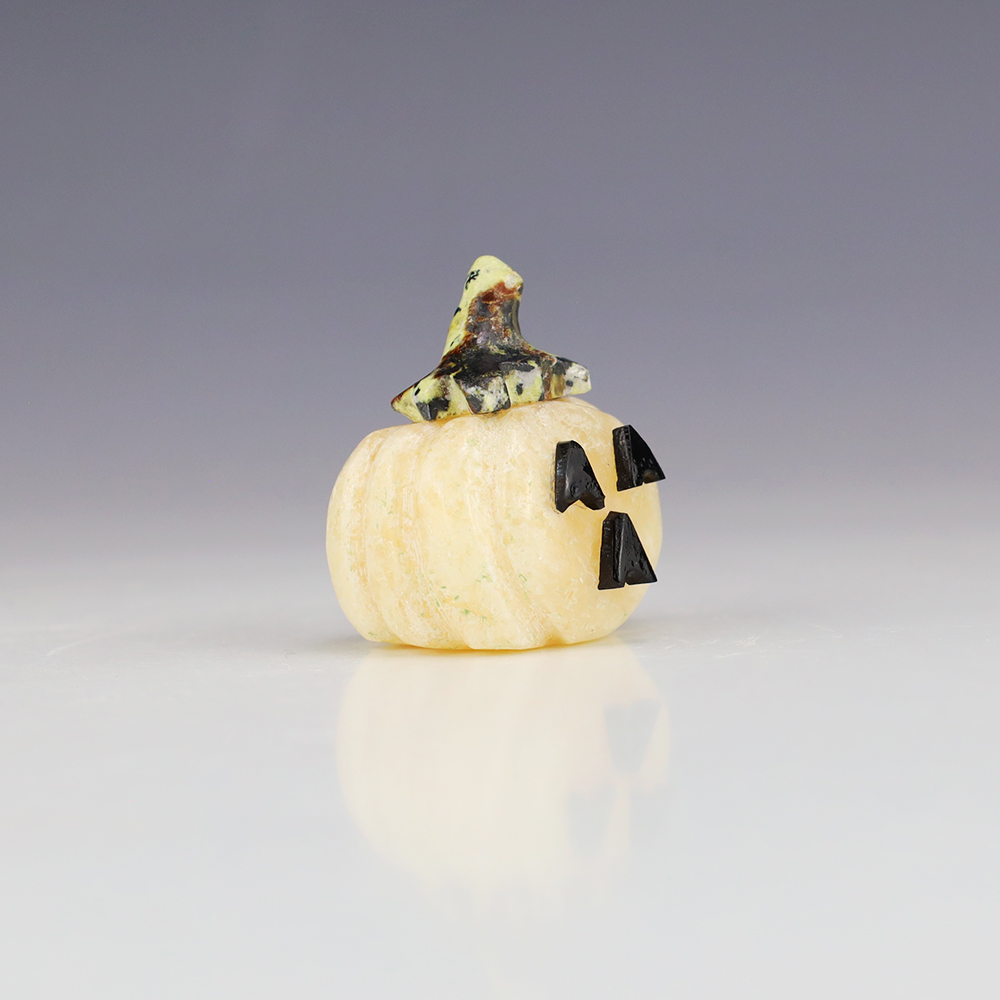Zuni fetish artist Mike Tucson made this fantastic Jack O’ Lantern out of Alabaster, Serpentine, and Jet. A great addition to your Native American or Zuni fetish collection. Signed