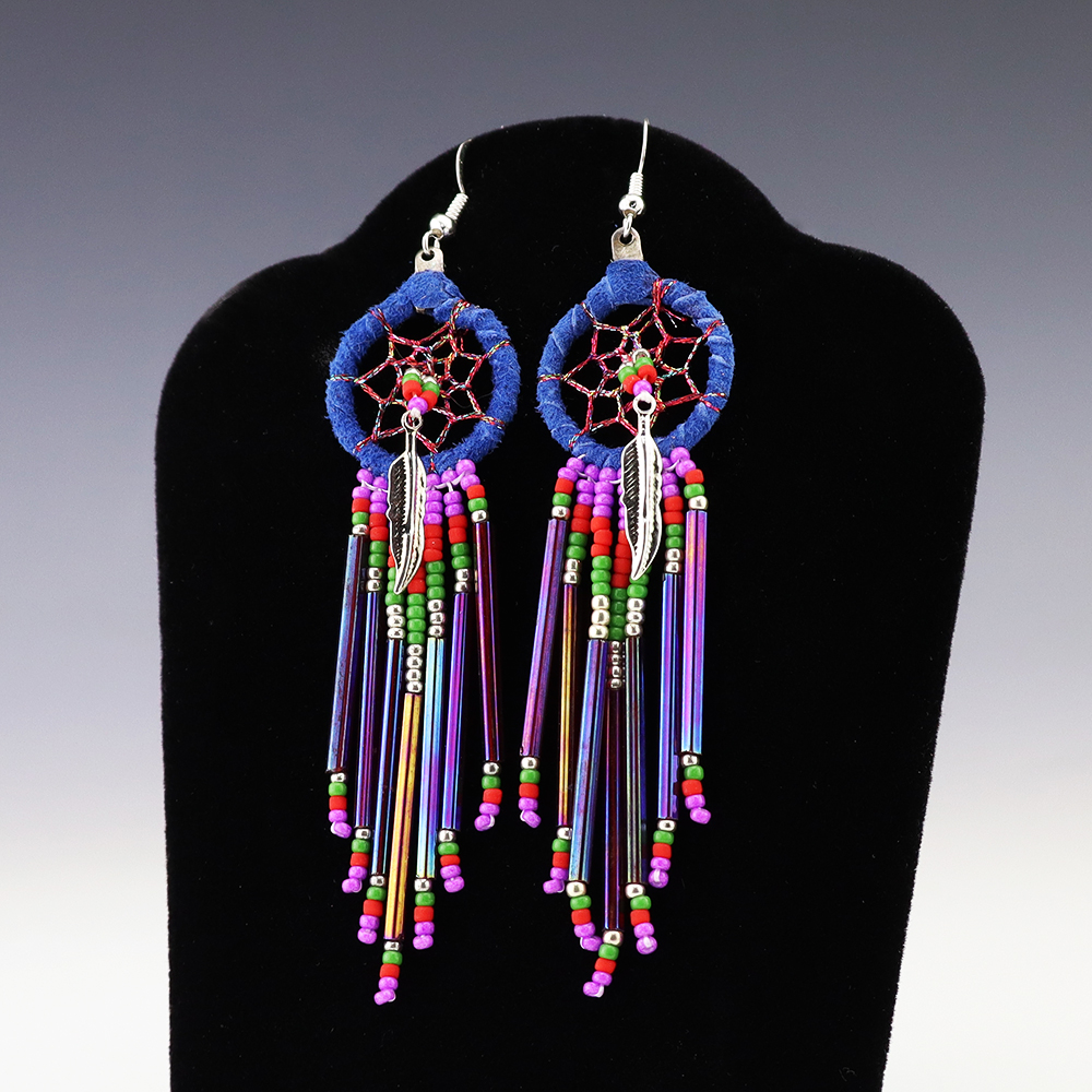These beautiful beaded earrings will make a statement! Great colors and style. Hand made by Navajo artist Charlene Jackson.